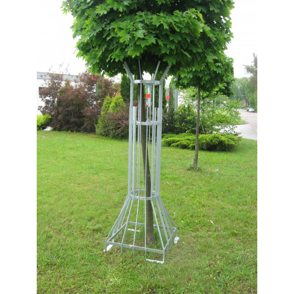 Osłona pionowa wykonana ze stali. Model składa się z płaskowników o dwóch długościach, wygiętych w górnej i dolnej części, złączonych - jedną kwadratową i dwiema okrągłymi - obręczami. Doskonale wkomponuje się w otoczenie historycznej architektury.